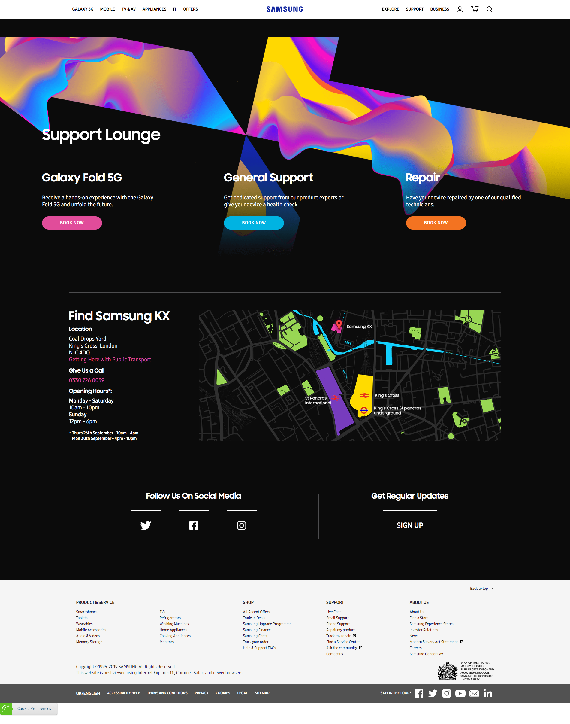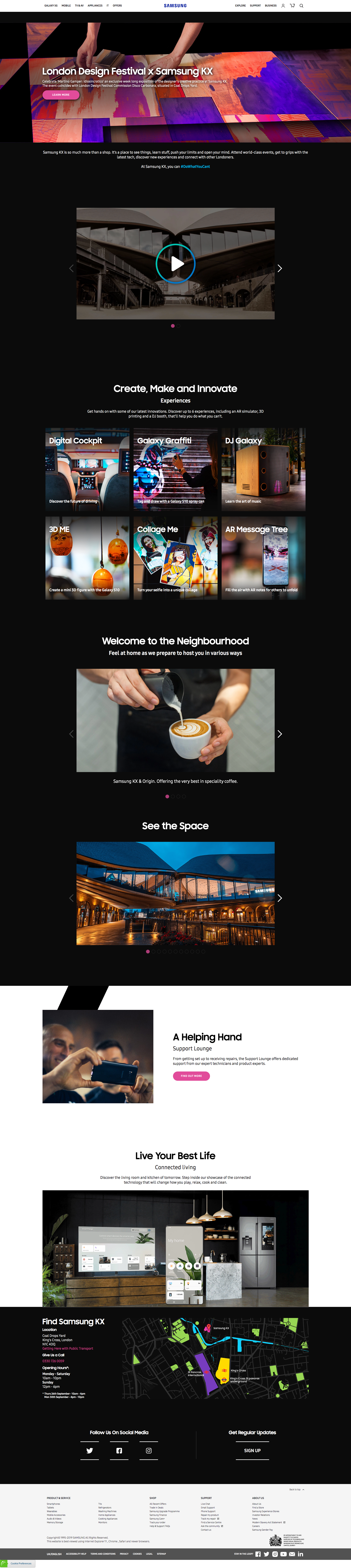 Samsung Kings Cross (Samsung KX) is located in the Kissing Point, the space that connects two converted 19th-century coal warehouses, in Coal Drops Yard. It is not officially a shop, but rather a space where visitors can get hands-on with some of Samsung’s latest innovations, discover things, attend events and in the process, fall in love with the Samsung brand. KX had a soft opening in July 2019 and was officially launched in September 2019.